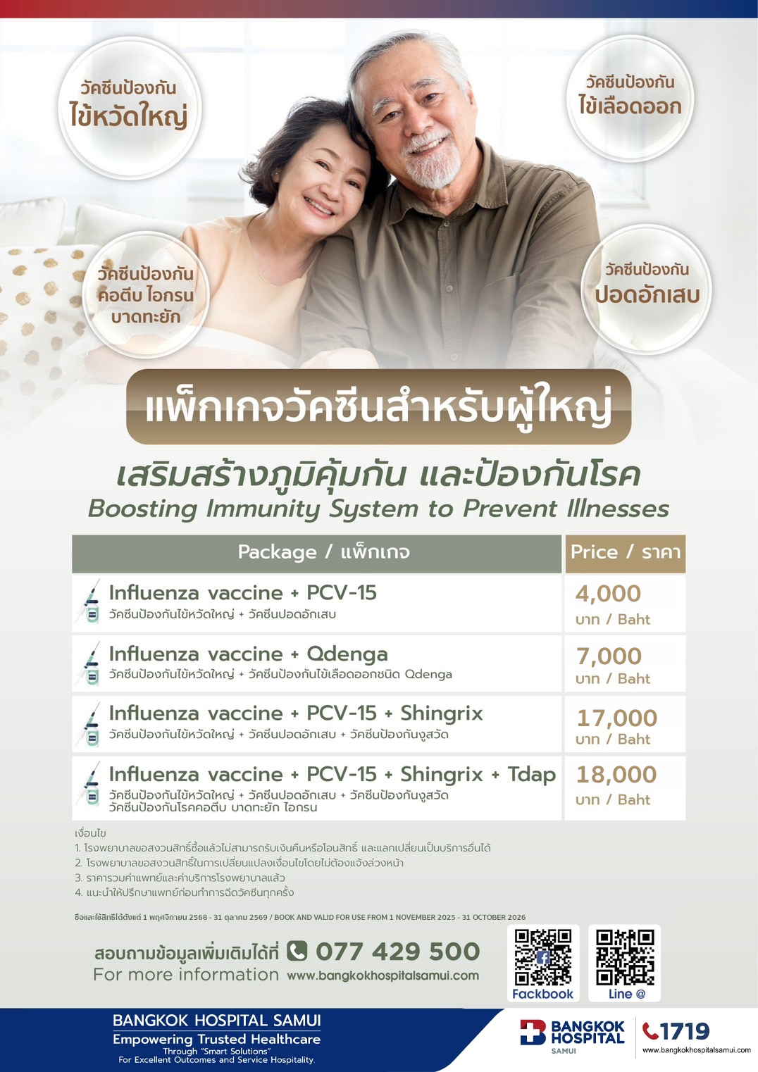 Great value with the vaccination program package for the elderly at a special price at Bangkok Hospital Samui. Even though entering into elderly mode